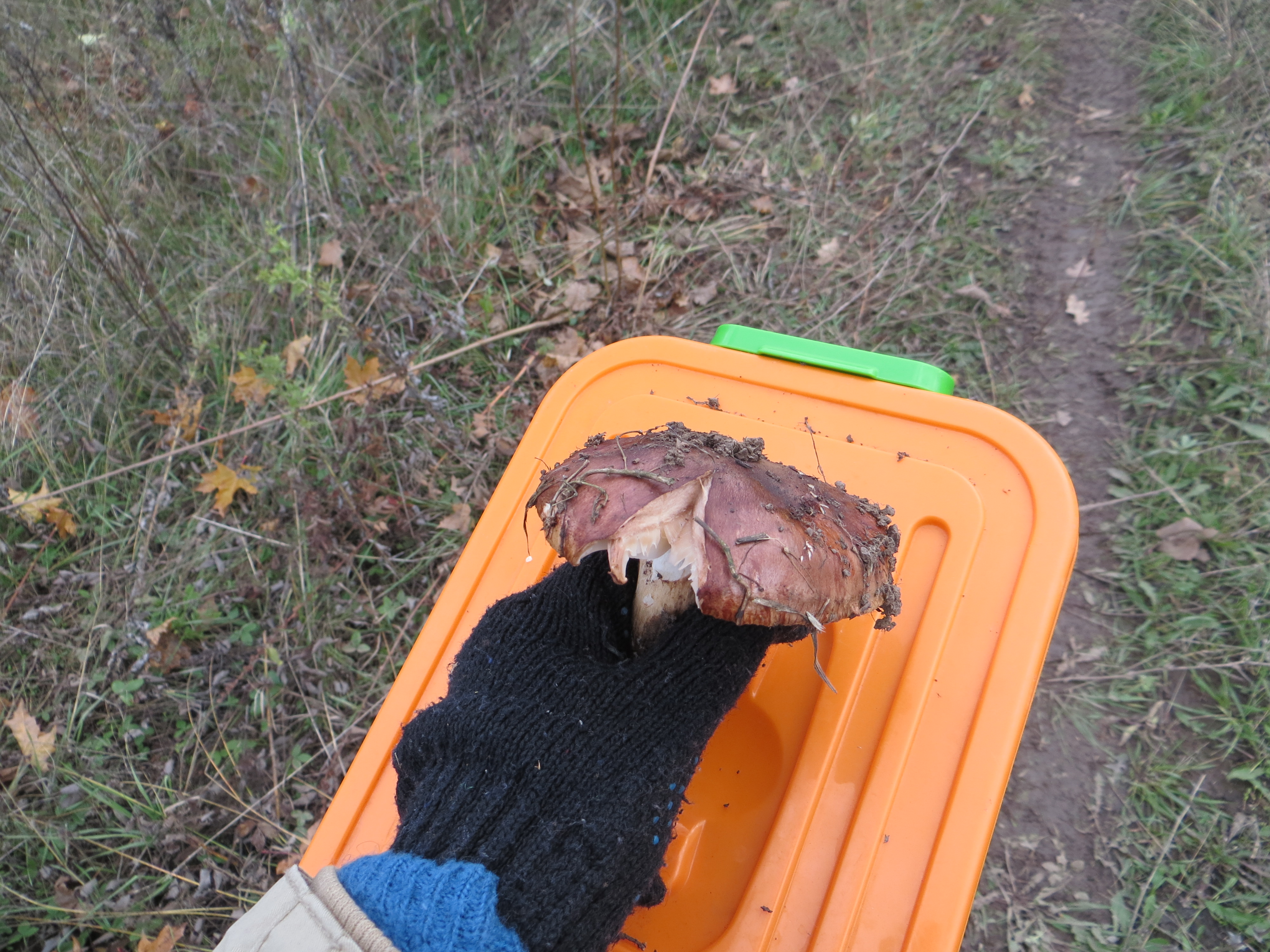 В соснах торчали старые маслята. Стоп, в прошлые выходные их там не было! Выходит, за неделю маслята выросли и уже успели состарится до трухи. А глубоко под травой рыжели чьи-то шляпки. Раскапываем, а там замерзшие рыжики кучками торчат. Такие ледяные, что если уронить гриб то он разобьется со звоном. Набрали мы немного последних в этом году рыжиков, и пошли к машинке.