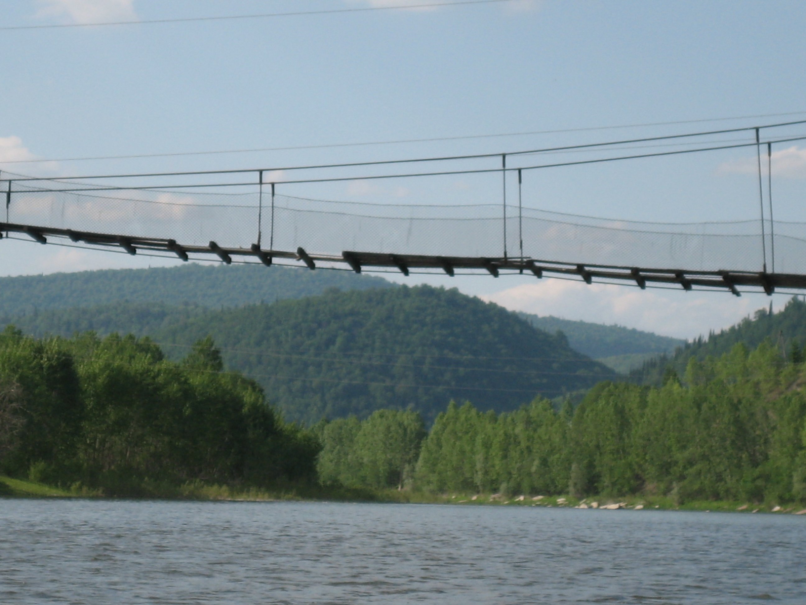 над одним из бревен через Атышку мы протянули канат для удобства перехода. Но судя по… »