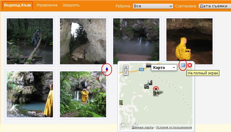 При загрузке или последующем редактировании фотографий, можно привязать фотографии к месту на карте. Для этого в Управлении Галереей, или в индивилуальном редактировании фотографии, нажимаете кнопку