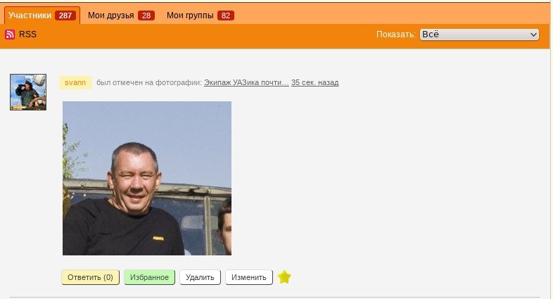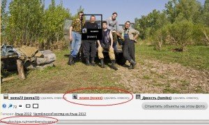 Ник и аватар отмеченного друга выводится под фотографией, ссылка на ник участника активна и при клике на нее переходит в его профиль.