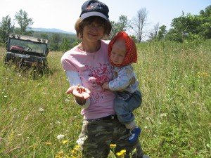 И вот мы и на горе. Гуляем по полянке и горстями лопаем ягоды