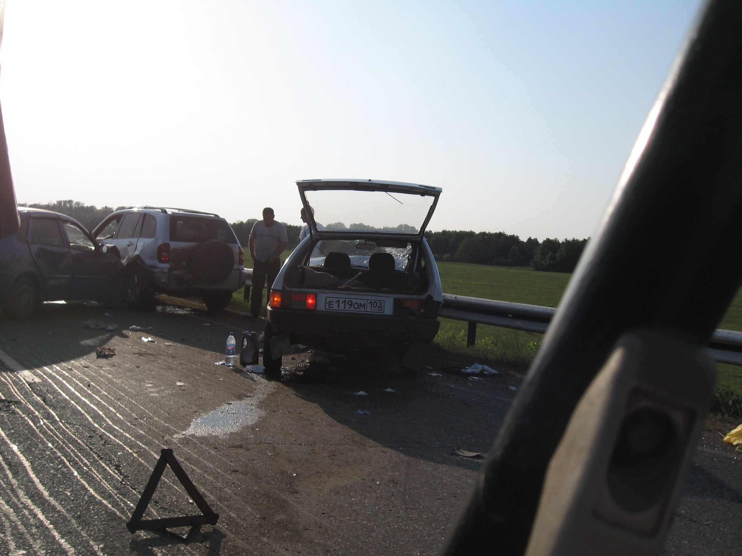 На трассе попали в пробку, увидели непонятную аварию, где без участия встречных машин трое попутно ехавших не разошлись на дороге. Товарищи, ездите аккуратнее. Дальше без приключений доехали до города.