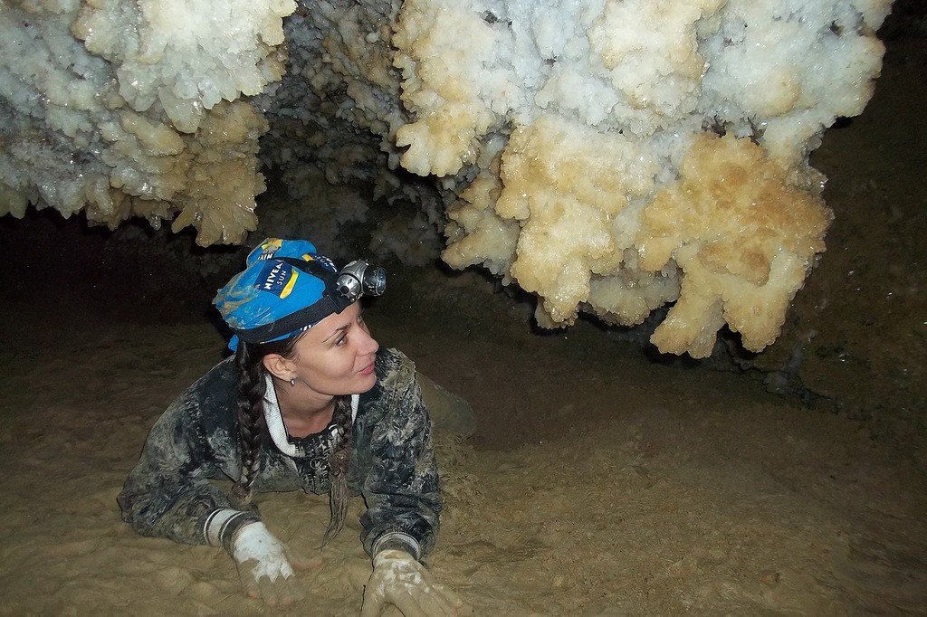 - О, какие сосули! - восклицала она, направляя свой фонарик на стены и потолок пещеры.