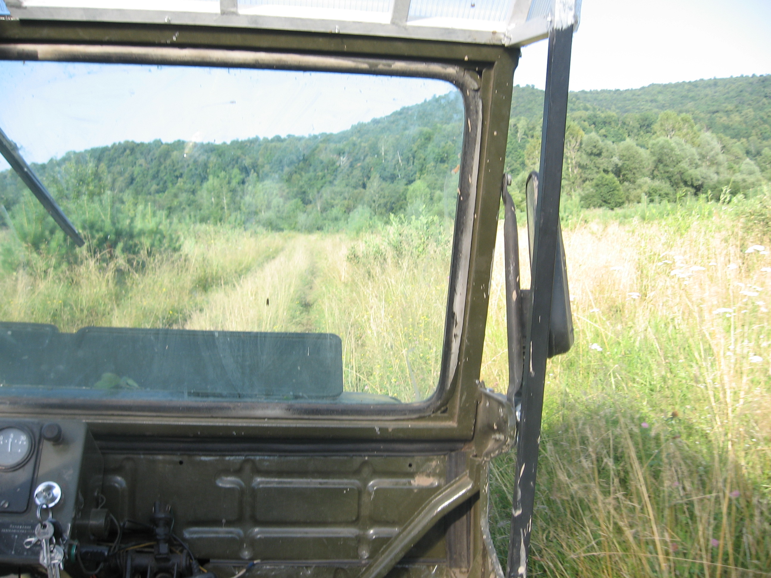 Так, а почему мы собственно на Сим свернули? Когда до поселка Верхние Лемезы - откуда многие начинают поход на Атыш, можно асфальтом добраться. Так это все потому, что машинка, на которой началось путешествие - амфибия, самая настоящая военная, а асфальтом она не очень-то любит кататься. Полевые и лесные дороги да мокрые реки ей роднее - это ее стихия. Так что маршрут был проложен так, чтоб был короче, и даже если река на пути, это не важно.