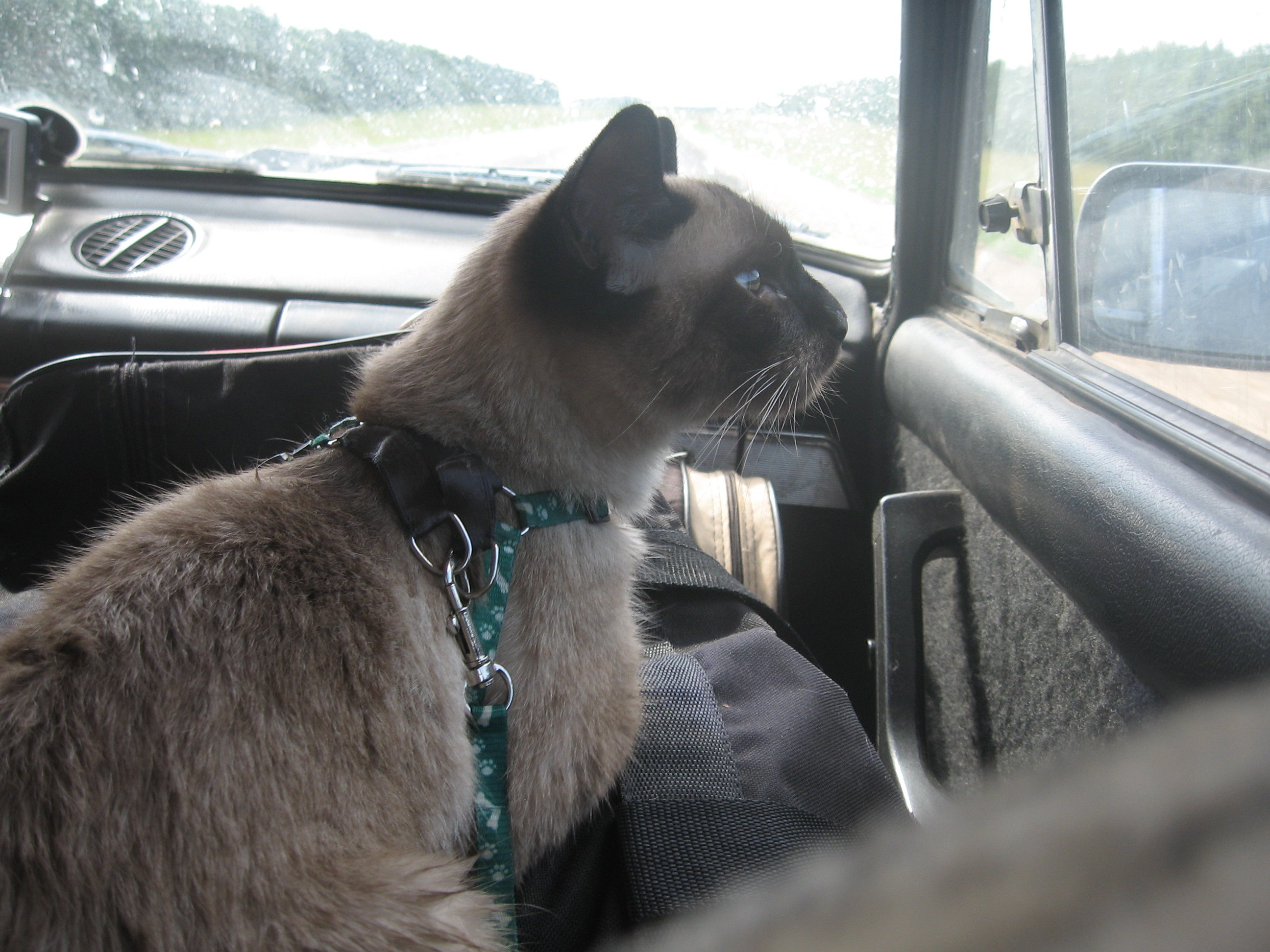 Выходные эти были более не совсем обычными - мы брали с собой Кота. Палатки, спальники, еда, вещи - погружено всё в машину. Для кота взяли его миски для еды и лоток с наполнителем. Осталось забрать из дома ребенку и Кота. Все в сборе - пора трогаться. Котьку выпустили из переноски, и он начал ходить в машине, всё вокруг исследуя. К водителю кота не подпускали.