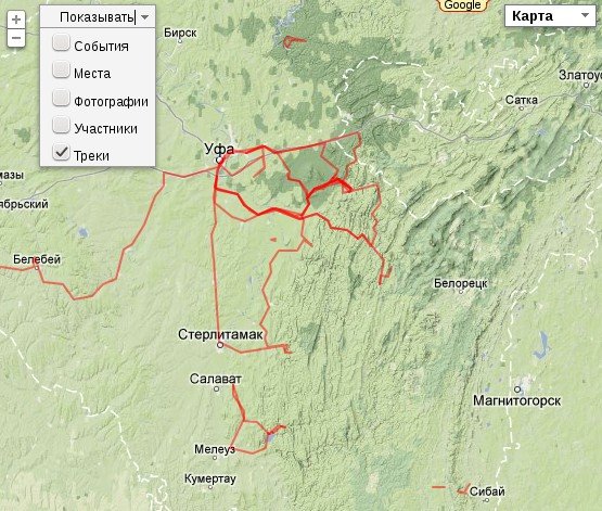 И в первую очередь мы... не стали делать отдельный сервис. Вся работа с треками оказалась органично встроена в движок сайта, так что отображение треков возможно не в единственном месте - а на любой карте сайта, достаточно лишь поставить галочку "показывать -> треки". Ведь на любой карте может возникнуть вопрос "а как сюда добраться", независимо от того смотрим мы на карте фотографии альбома, события, места или еще что.