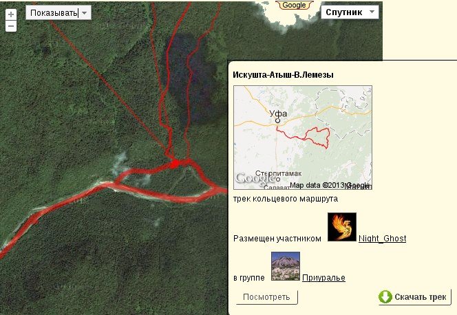 На картинках видно, что поиск того самого "трека спуска к Атышу" у нас оказался прост и понятен - находим на карте Атыш, смотрим треки, которые к нему подходят, и выбираем понравившиеся. Тут же можно трек просмотреть более детально, и если понравился то скачать в любом формате.