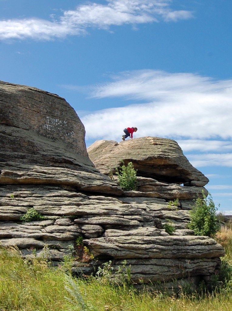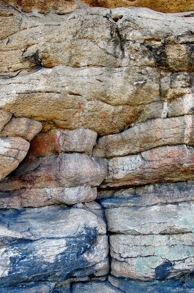 Под надписями вандалов, виднеются древние писаницы возраст которых более 7 тысяч лет. Много антропоморфных изображений (по некоторым предположениям – шаманов). Преобладают геометрические мотивы в виде сетки, гребней, ромбов и отдельных отрезков. Значение ряда рисунков однозначно интерпретировать не удалось. Как предполагают ученые, здесь проводились регулярные жертвоприношения.